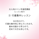 2026年2月14日 / 最終更新日時 : 2026年2月12日 youu ◆レッスン紹介 ペン字通信講座 レッスン紹介③ 行書集中レッスン こんにちは(^_^)大人向けペン字通信講座/葉雨ペン字通信レッスンです。 今日は「行書集中レッスン」のご紹介です。 このレッスンは、 「行書だけのレッスンはやっていませんか?」「行書の勉強の仕方が分かりません」 というお […]