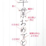 2026年3月10日 / 最終更新日時 : 2026年3月9日 youu *書き方動画 ペン習字 「卒業おめでとう」の書き方 こんにちは(^_^)大人向けペン字通信講座/葉雨ペン字通信レッスンです。 3月は卒業シーズンですね。 今日は「卒業おめでとう」の書き方です。 コツは、 ・「卒」・・・上から2番目の横画を長く書く(それ以外は幅狭くする)・ […]