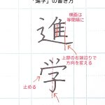 2026年3月14日 / 最終更新日時 : 2026年3月14日 youu *書き方動画 ペン習字 「進学」の書き方 こんにちは(^_^)大人向けペン字通信講座/葉雨ペン字通信レッスンです。 4月は進学の季節ですね。 今日は「進学」の書き方です。 コツは 【進】・横画は等間隔に書く・しんにょうの右払いは「隹」の右端辺り でペンを止め、方 […]