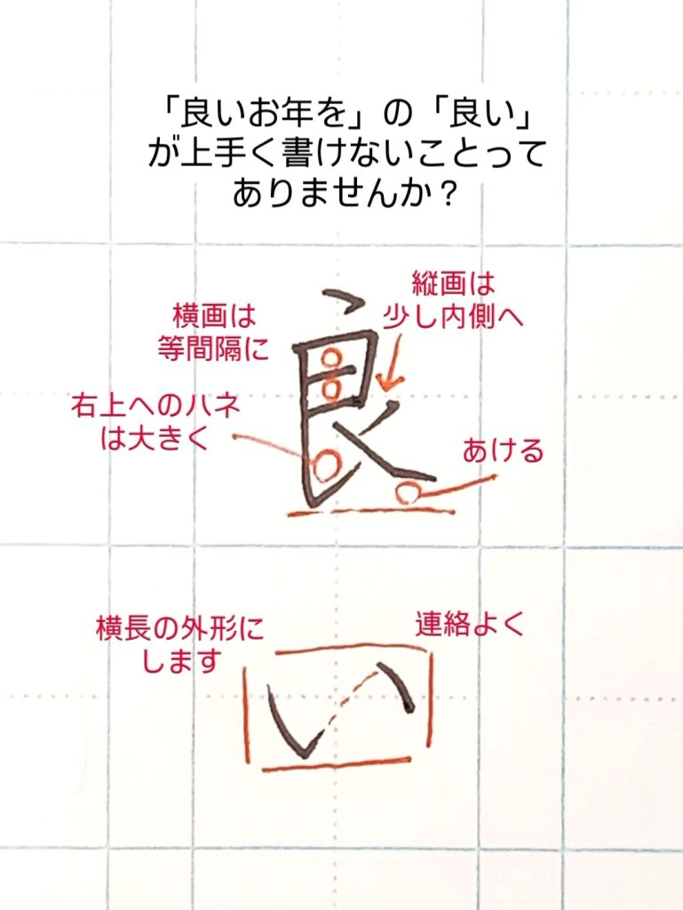 ペン習字 「良いお年を」の「良い」の上手な書き方