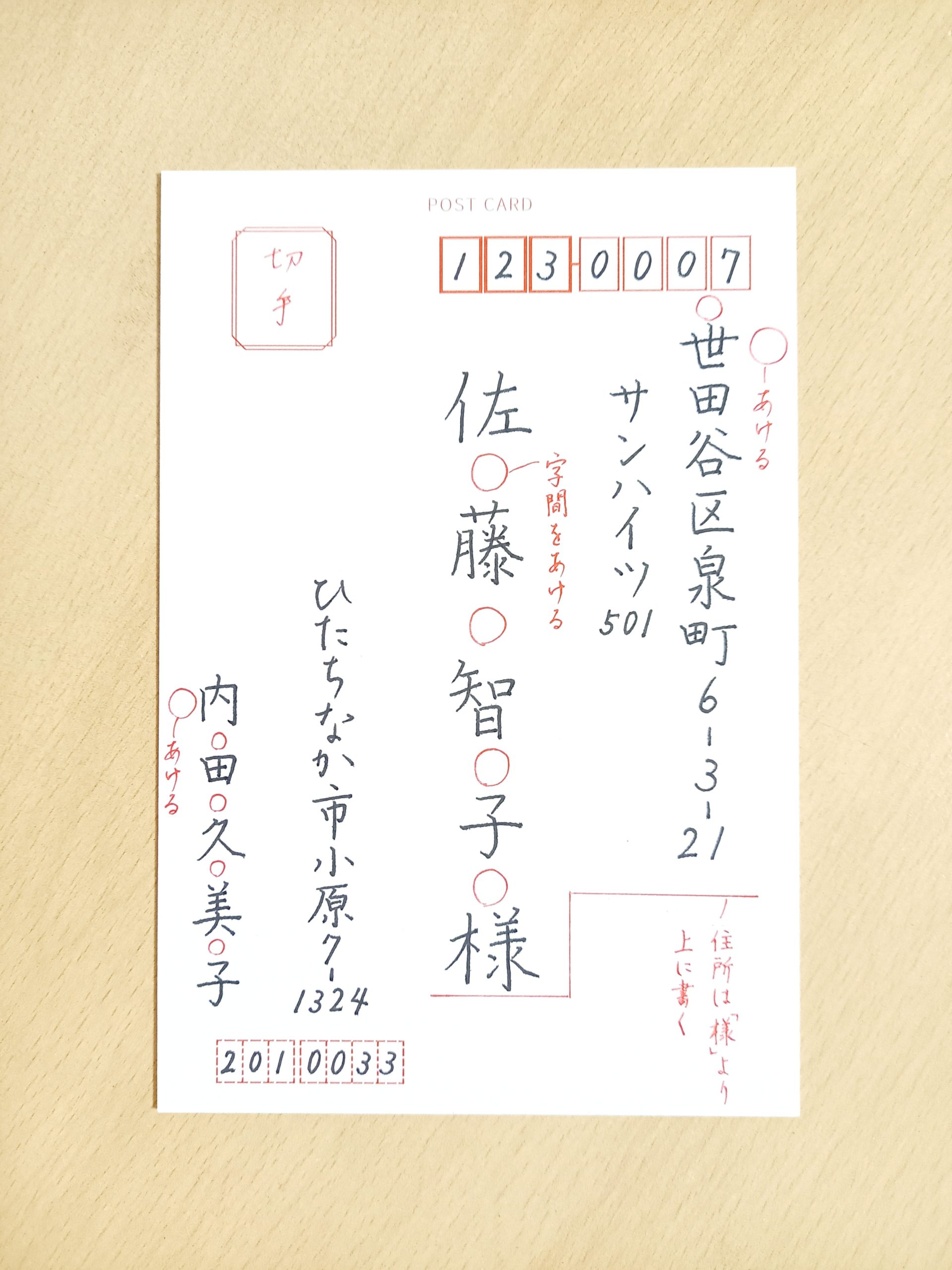 ・宛先住所を書く時は右側に一文字分くらい余白をつくる