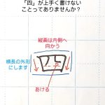 2026年1月29日 / 最終更新日時 : 2026年1月28日 youu *書き方動画 ペン習字 「四」の上手な書き方 こんにちは(^_^)大人向けペン字通信講座/葉雨ペン字通信レッスンです。 今日は漢数字の「四」の上手な書き方です。 コツは、 ・左右の縦画は内側へ向かう・四画目の下は、三画目の左払いより上で終わる・横長の外形にする など […]